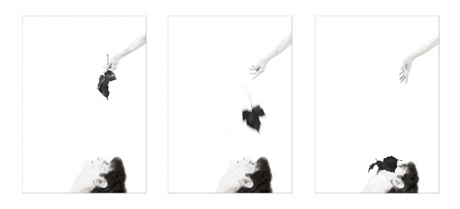 L’autore fa ciò attraverso un lavoro molto creativo, dove la foto è solo il momento finale del processo. Corpi ed elementi naturali sono dipinti con pigmenti bianchi e neri prima dello scatto fotografico.