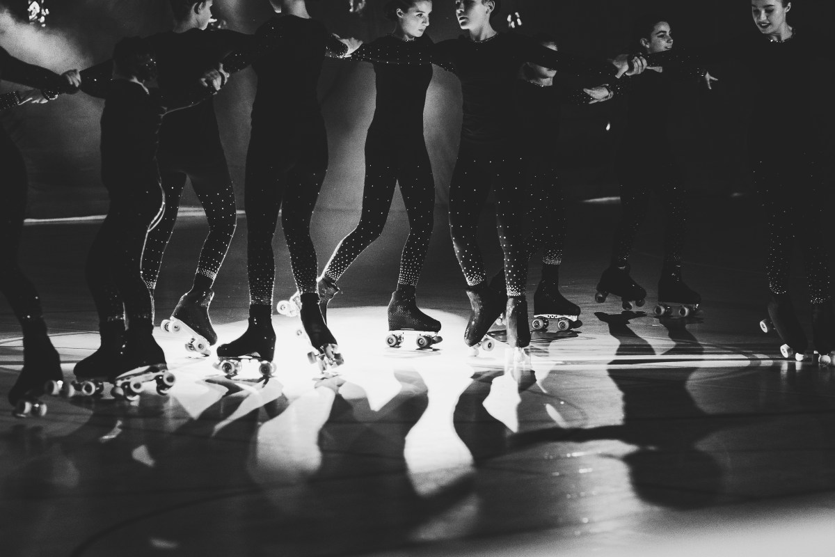 Con una suggestione semplice ed immediata l’immagine si snoda in un gioco di contrasti e di armonie: c’è il fermo immagine che comunica la magia dell’agile movimento, c’è l’aggregazione di un dialogo emotivo e confidenziale tra figure ritratte ed immerse in uno spazio sconosciuto e dilatato, c’è la prodigiosa intensità delle tensioni muscolari che si libera nell’armonia piena e flessuosa dei corpi, c’è la luce che filtra dal buio ed irrompe condensata al centro dell’immagine per riflettersi nei singoli volti delle giovani ragazze, c’è l’esercizio di paziente e silenziosa attesa del fotografo e la fugacità dell’attimo impresso. Nell’immagine a fare da aggregante, oltre al rigoroso bianco e nero, ci sono i piccoli cristalli lucenti che circondano le gambe e le braccia delle atlete trasformando il movimento in un abbraccio corale.