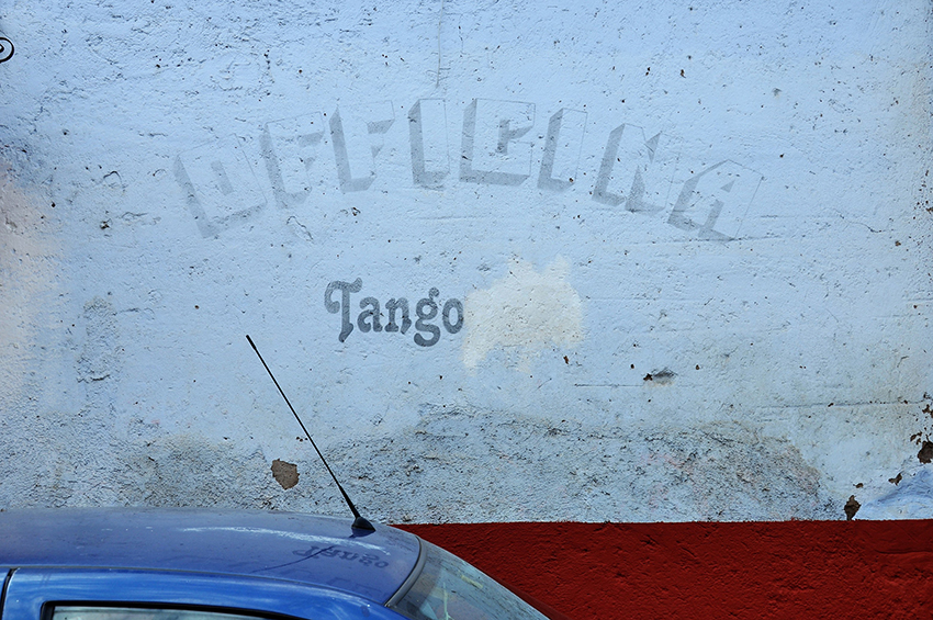 Un po’ la stessa cosa per la foto “Officina – Tango”, anche se qui i caratteri sono a stampa. Come in un film di Moretti (Aprile) dove vi è un pasticcere che balla in un musical, si può pensare ad un meccanico che ama i balli argentini.