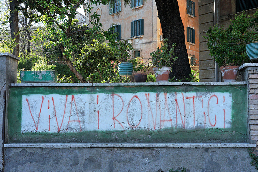 La foto con la scritta “Viva i romantici”: nostalgia di una cultura che non muore mai ma anche coraggio di esprimere un modo di vivere dove il sentimento ha ancora spazio.
