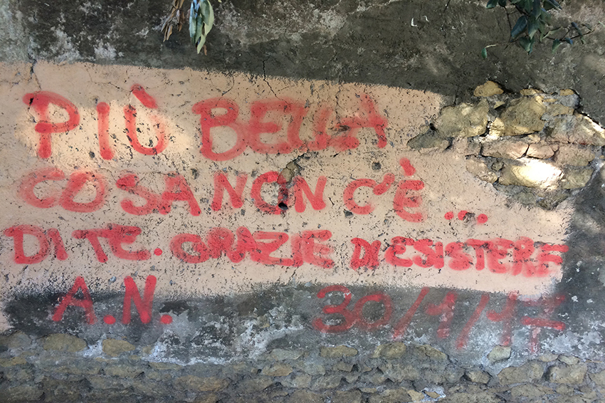 Perché scrivere su un muro “Ciao Antò”, è un saluto, un addio, o è un modo di dare un benvenuto e comunque è un rendere pubblico una situazione privata.
