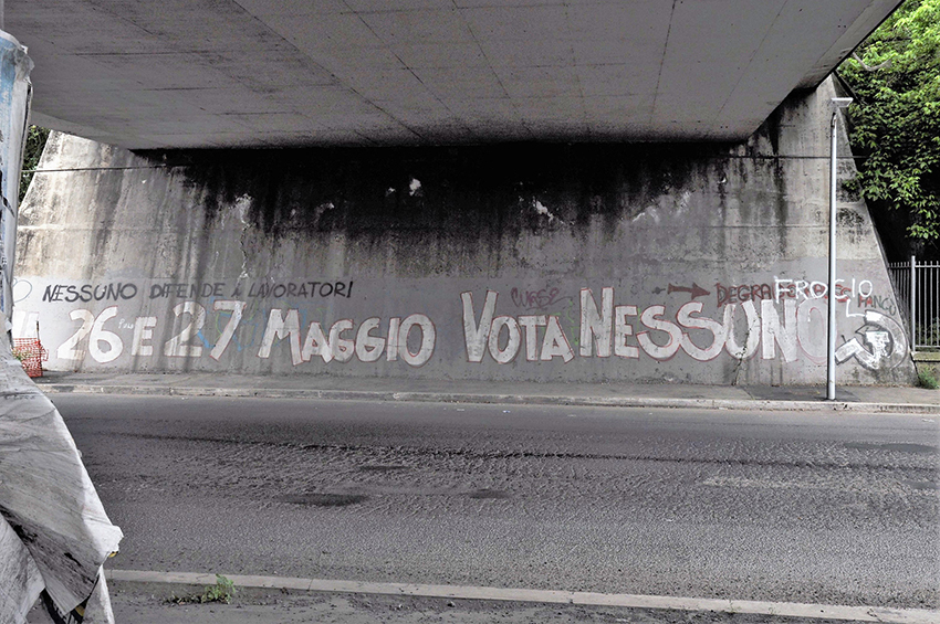 Nonostante le tante scritte politiche ho messo quella che esprime il disincanto più amaro a fianco di quella di chi, in un quartiere come S. Lorenzo, non si arrende.