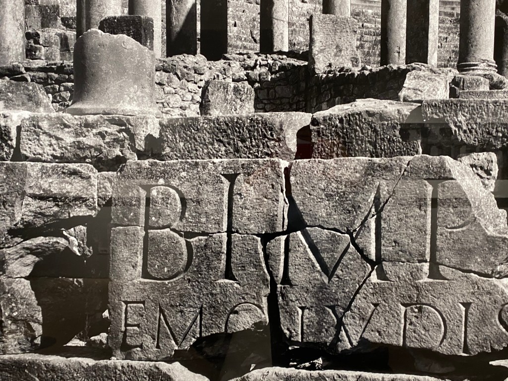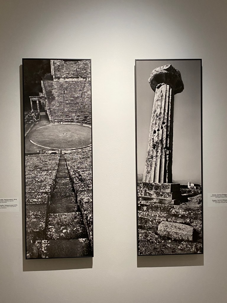 I siti emergono ora evidenti, ora meno, contestualizzati, o al contrario universalizzati, perchè colti in particolari non facilmente ricostruibili. Colonne, templi, teatri, insomma storia umana letta con la lente dell’arte mostrata come punto di vista del fotografo, che non vuole semplicemente documentare ma anche creare. E quindi guardiamo al passato ma nello stesso tempo sentiamo che quello che abbiamo difronte è il contemporaneo.