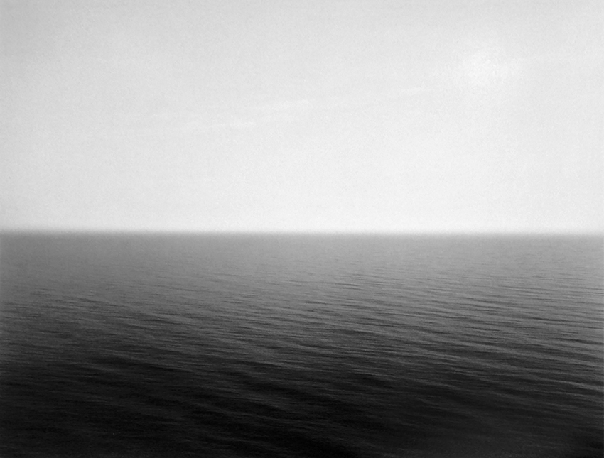 Il giapponese Hiroshi Sugimoto cerca l’origine del mondo e la sua eternità al di là dell’uomo; i suoi scatti rappresentano sempre il mare nei momenti di assoluta tranquillità, con la linea dell’orizzonte che taglia in due esatte metà ogni immagine. La ripetizione di questo formato nelle sue numerose fotografie allude al tempo infinito e al senso di eternità “nel mare posso trovare la memoria dell’umanità – o meglio, la memoria della vita stessa – che persiste ancora debolmente nel fluire del sangue. Per me il mare è il liquido amniotico. Fu nel mare che la vita nacque per la prima volta tre miliardi di anni fa”.