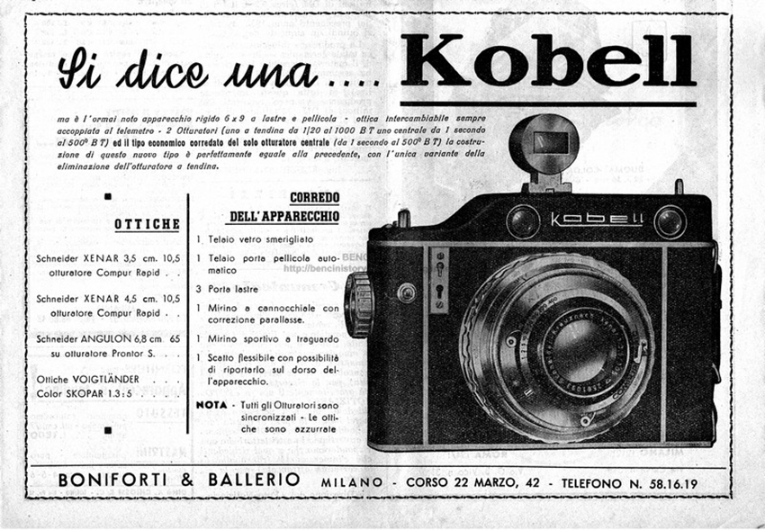 Era stata pensata per il fotoreportage giornalistico, riuscendo ad unire le pellicole negative medio formato delle rolleiflex e la flessibilità delle ottiche intercambiabili Leica. Tra gli autori che a scopi artistici avevano ed usavano la Kobell, oltre Giacomelli, c’erano, Giuseppe Cavalli, Ferruccio Ferroni, Renzo Tortelli e, su consiglio e raccomandazione di Giacomelli, anche Duilio Barbaresi, suo amico, celebrato parrucchiere senigalliese, esperto ed appassionato di fotografia.