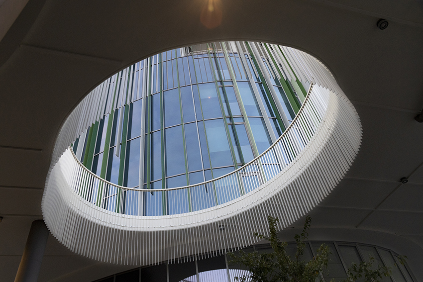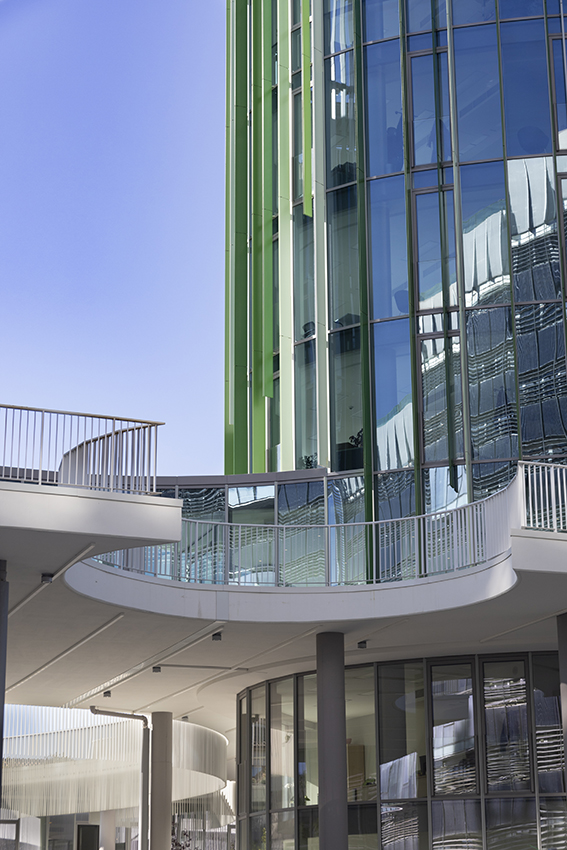Al suo interno, oltre agli uffici, ci sono l’aula magna, aule per la didattica, la “piazza telematica” e sale riunioni varie; oltre ai nove livelli fuori terra, vi sono due livelli di parcheggi.