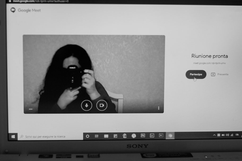 Nel corso dei tre interventi è stata rimarcata la grande adesione dei fotografi nonostante i tempi, tra il lancio del progetto e i termini di consegna, fossero più brevi del solito. Un altro aspetto che è stato messo in risalto è, come questo difficile periodo sia stato raccontato dai partecipanti con foto apparentemente semplici, orientate alla quotidianità dentro casa, sul lavoro, nella gestione dei bambini, degli anziani e delle persone più fragili. Tra queste vorrei citare: la serie fotografica dei ritratti delle infermiere, di Giuseppe Misesi (La cura in uno sguardo), posizionate al piano superiore di fronte alle sale espositive in modo che fossero visibili da ogni stanza; una serie di foto che abbinano la pagina di giornale ad un gesto quotidiano (Andrea Colleoni – Lockdown e Vincenzo Bianco – Quotidianità sospesa, per citarne due); una serie di foto sulla difficoltà di poter essere vicini ai parenti in RSA (Valerio Pagni – La stanza degli abbracci, per citarne una). Inoltre, lungo il corridoio, tra il piano terra ed il piano superiore, sono stati appesi dei fogli di calendario a ricordare il tempo trascorso, con le date che vanno da marzo 2020, inizio dell’emergenza sanitaria, fino ad oggi.