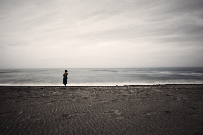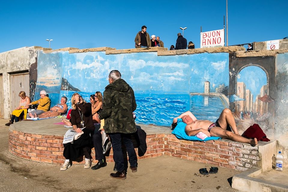 Nel portfolio “Ready for the sea” è sempre il bianco e nero dai netti contrasti lo strumento per raccontare la storia di un percorso verso il mare come meta ideale ma non necessariamente da raggiungere. Il viaggio può essere tante cose, turismo, fuga, spostamento ma quello di Andrea Valenti è soprattutto corporeità, coscienza della propria fisicità in assenza di luogo dove il mare, la destinazione d’arrivo, è riconoscibile solo in labili tracce. Nello sfondo cupo, che annulla lo spazio, il corpo, dai tagli stretti, diventa una sorta di viaggio mentale, vertigine del sentirsi vivi e felici perché, come scrisse Seneca nelle lettere al suo amico Lucilio “è l’animo che devi cambiare, non il cielo sotto cui vivi”. Nello stile straniante del fotografo il corpo umano, con le sue ‘imperfette’ perfezioni dalla nitidezza iperdescrittiva, si immerge nella negazione spaziale del buio, con ironica allegria sulle incongruenze e debolezze umane, restituendo al tempo stesso la percezione dell’empatia tra le persone, dell’odore degli olii solari, della pelle arrossata, della sabbia ruvida.